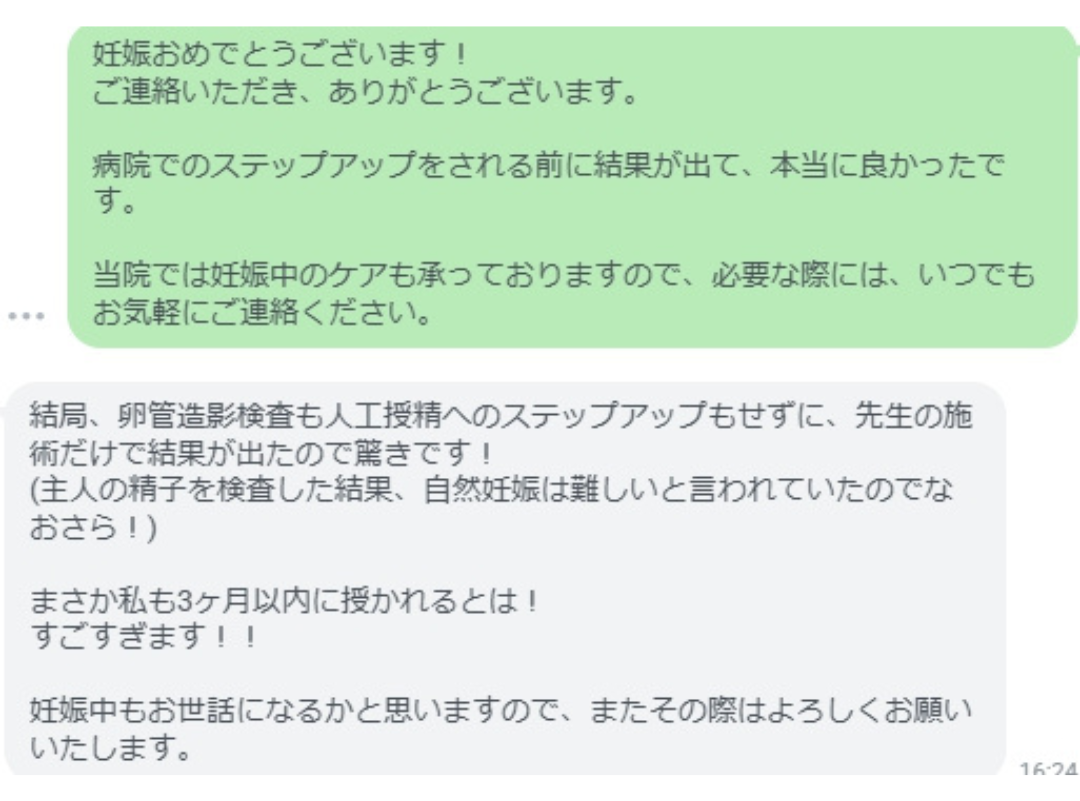 数回の施術で妊娠される方も少なくありません。