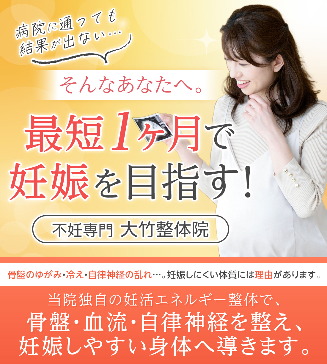 整体に通い始めて1ヵ月で妊娠することができました。
