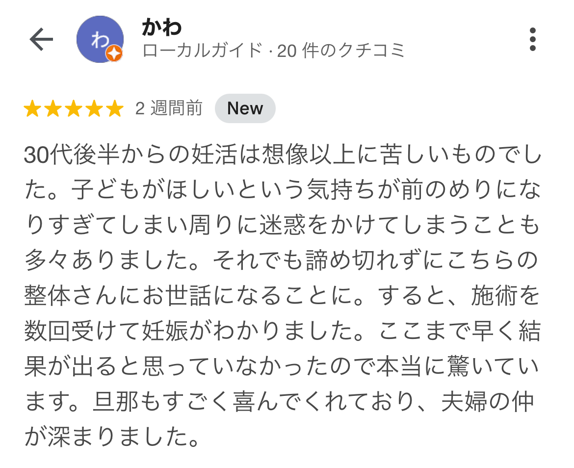 整体に通い始めて1ヵ月で妊娠することができました。
